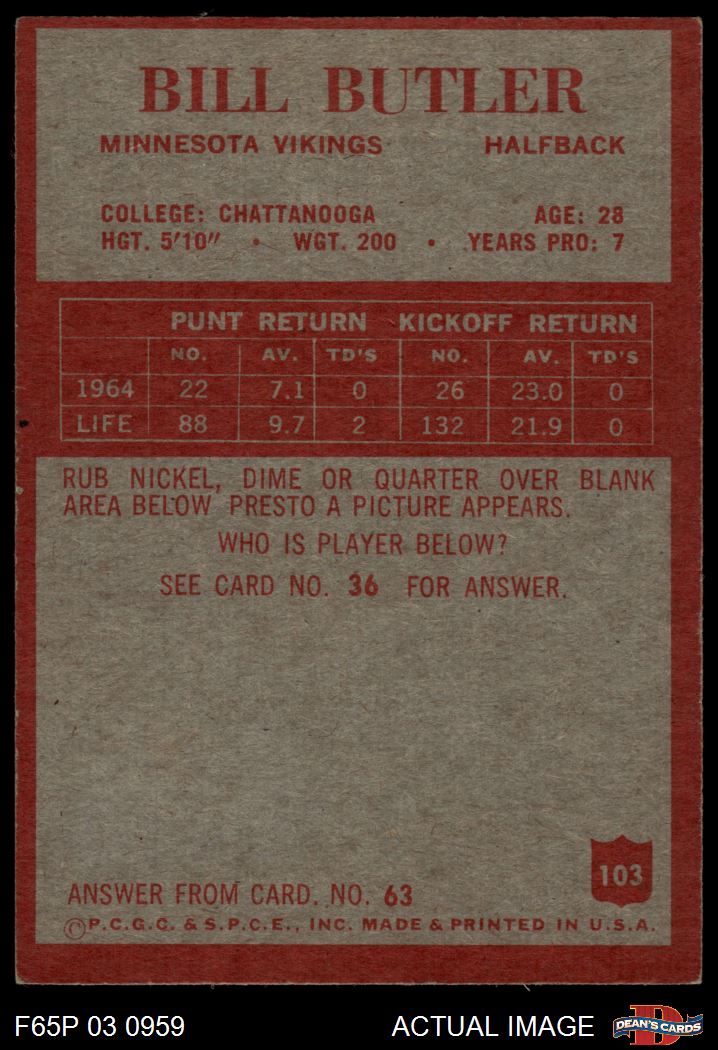 1965 Philadelphia #103 Bill Butler 3 - VG