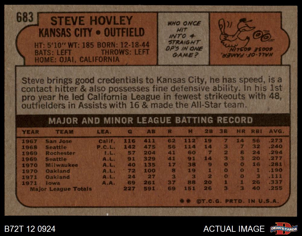 1972 Topps #683 Steve Hovley