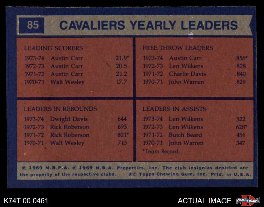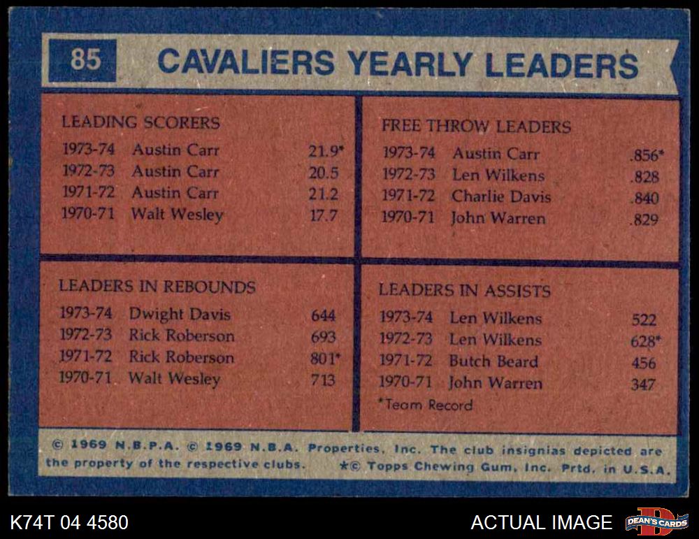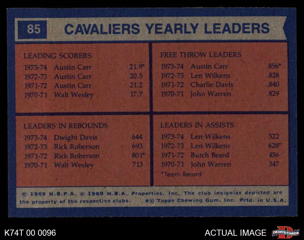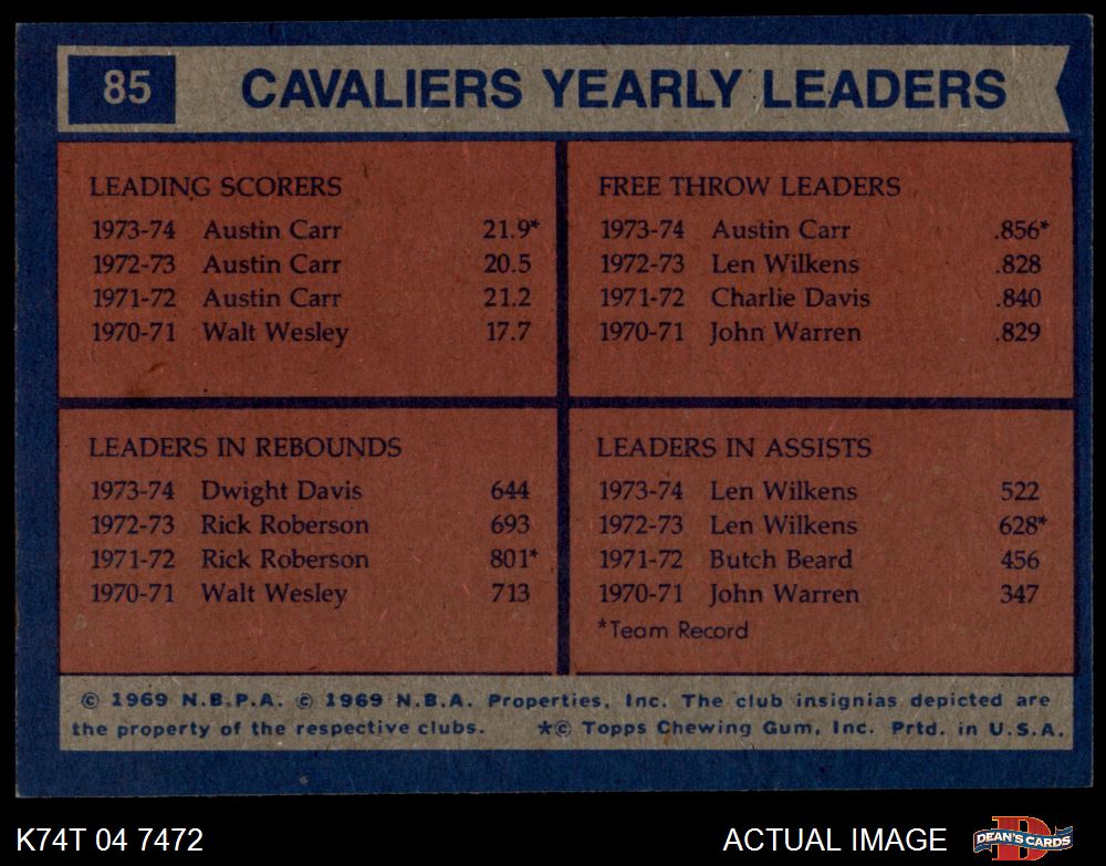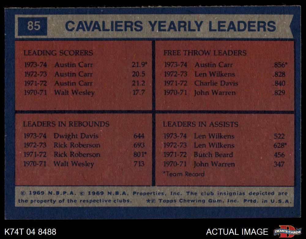 1974 Topps #85 - Dwight Davis / Austin Carr / Lenny Wilkens Cavaliers Leaders 4 - VG/EX