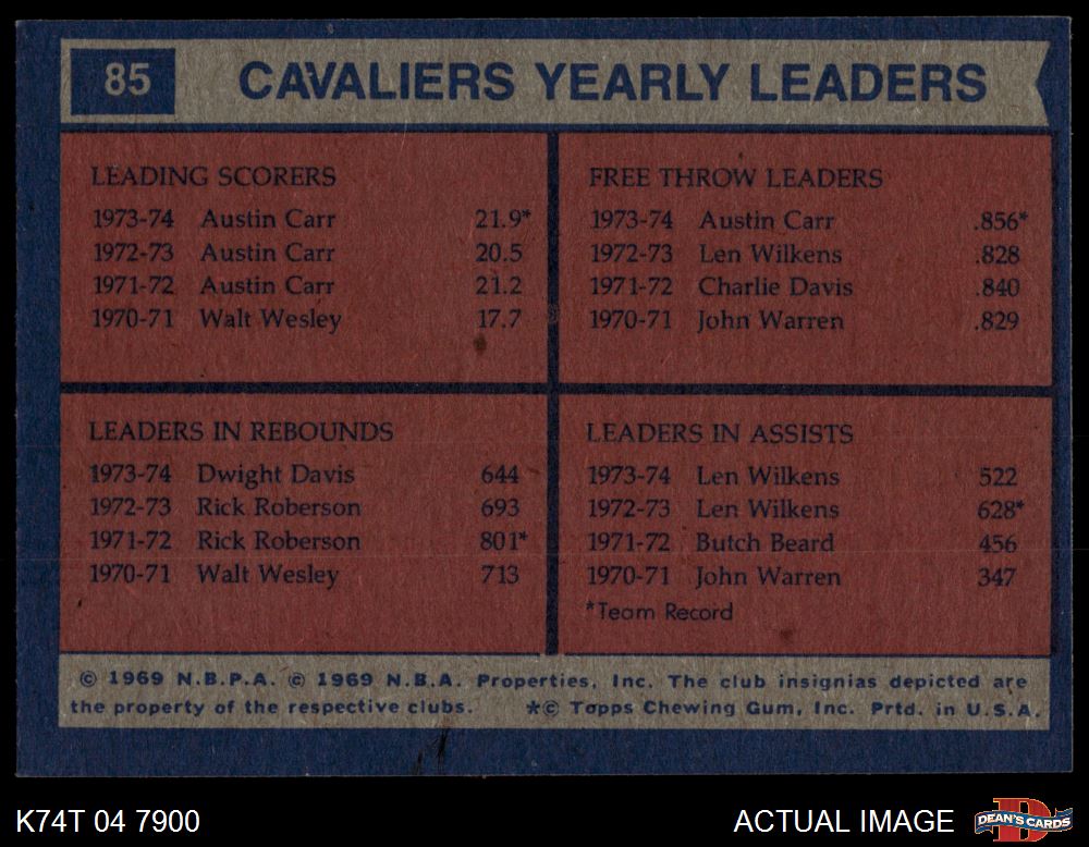 1974 Topps #85 - Dwight Davis / Austin Carr / Lenny Wilkens Cavaliers Leaders 5 - EX
