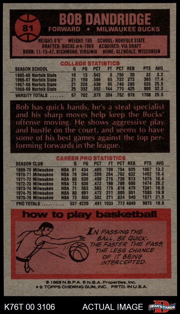 1976 Topps #81 Bob Dandridge 7.5 - NM+