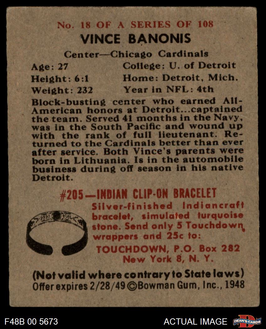 1948 Bowman #18 Vince Banonis 4 - VG/EX