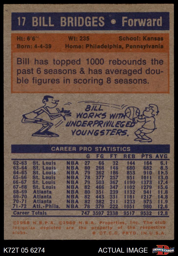 1972 Topps #17 Bill Bridges
