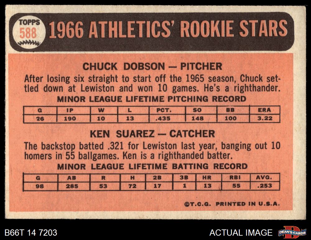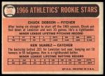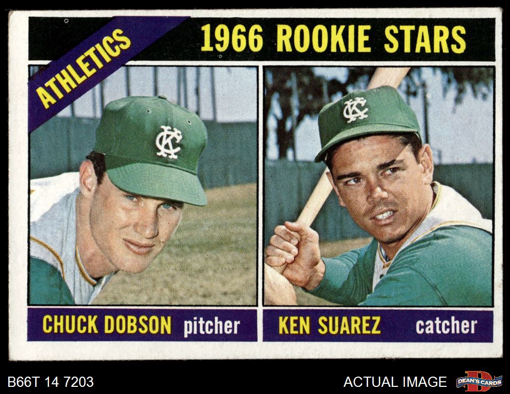 1966 Topps #588 - Chuck Dobson / Ken Suarez Athletics Rookies 3 - VG