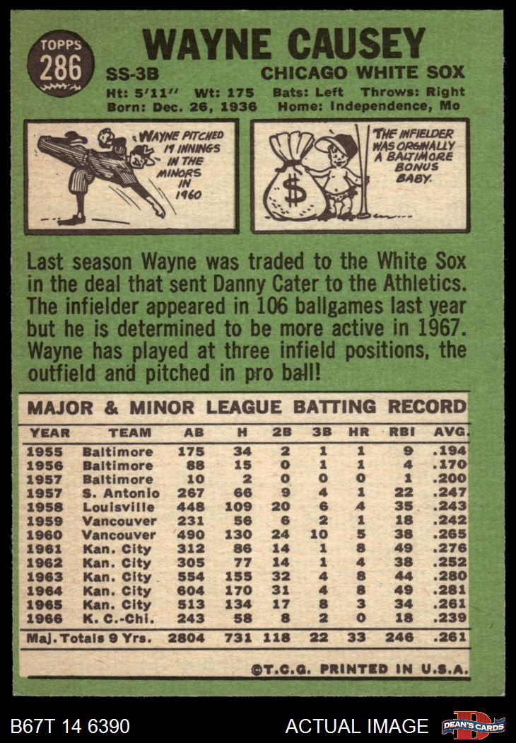 1967 Topps #286 Wayne Causey 6 - EX/MT