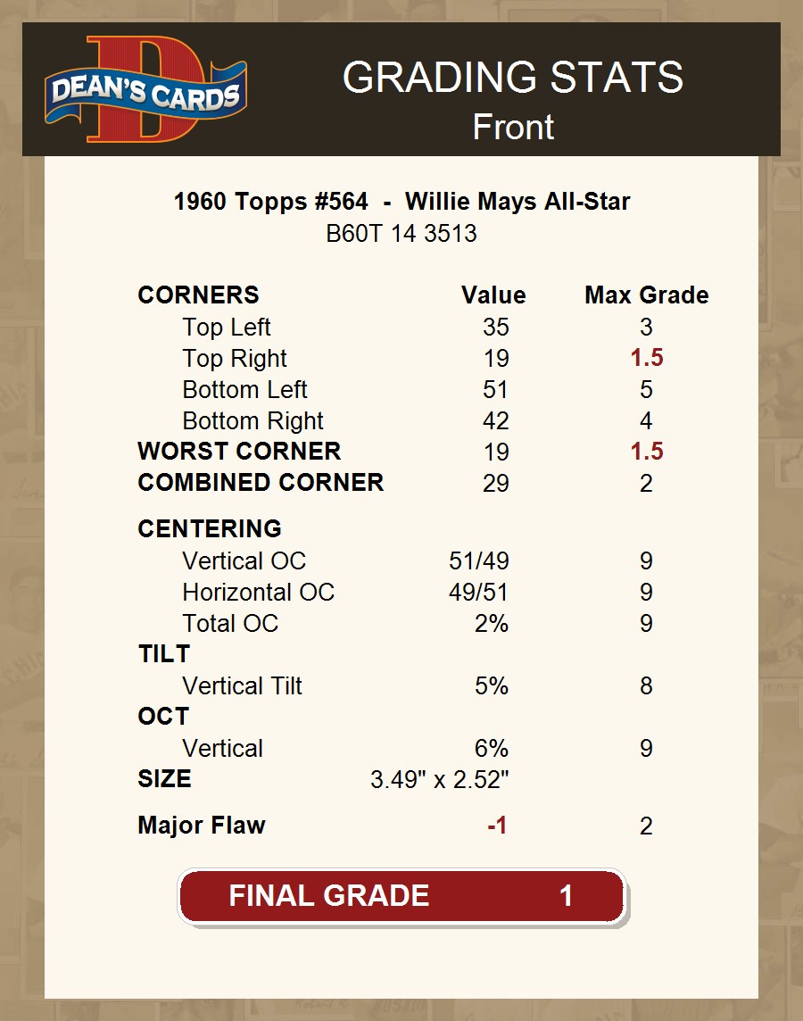 1960 Topps #564 - Willie Mays All-Star 1 - POOR