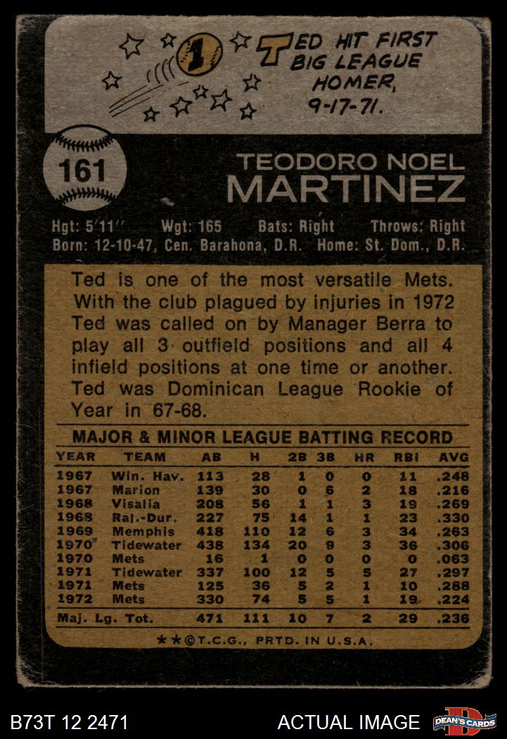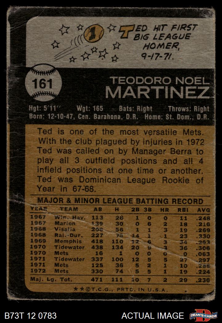 1973 Topps #161 Ted Martinez 1 - POOR