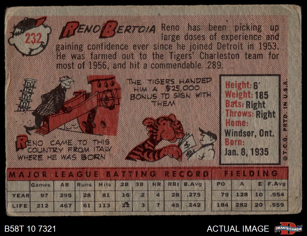 1958 Topps #232 Reno Bertoia Front Thumbnail