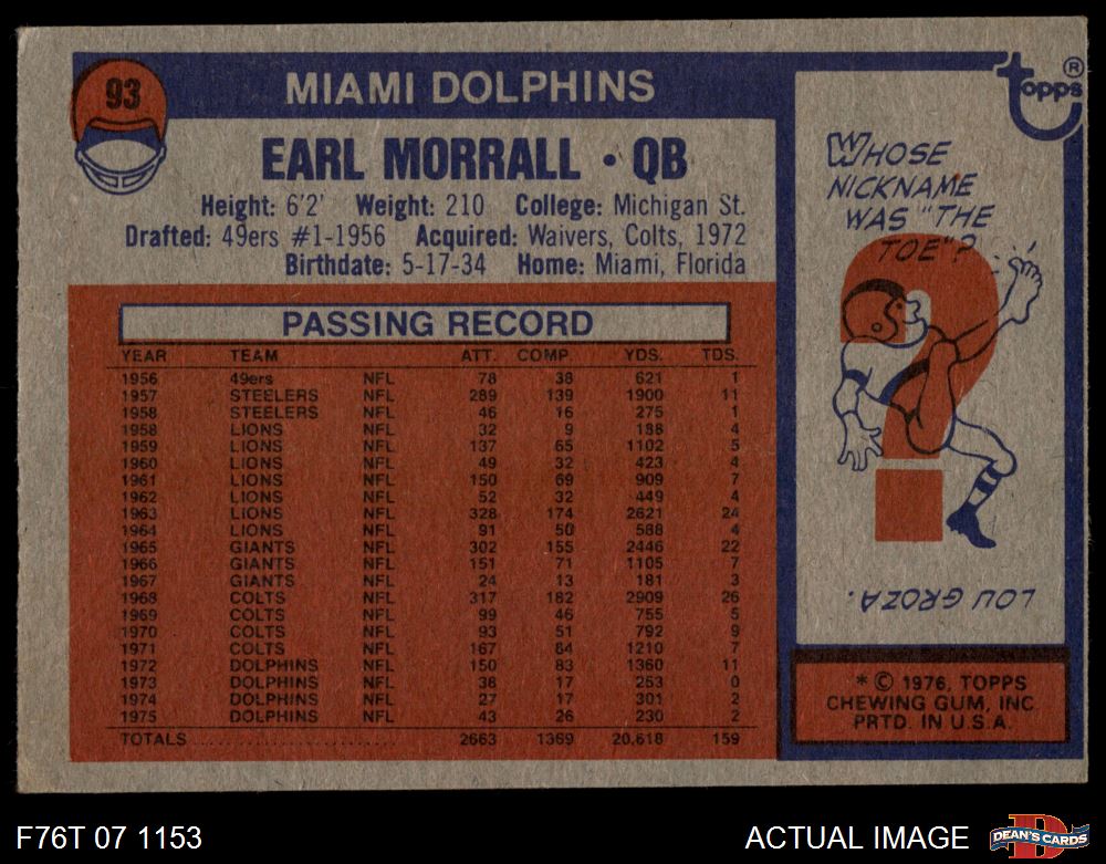 1976 Topps #93 Earl Morrall 3 - VG