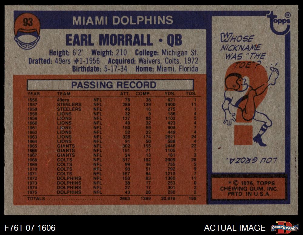 1976 Topps #93 Earl Morrall 4 - VG/EX