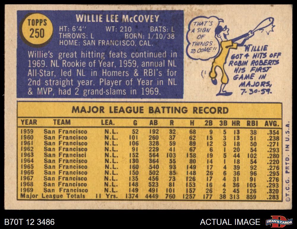 1970 Topps #250 Willie McCovey 4 - VG/EX