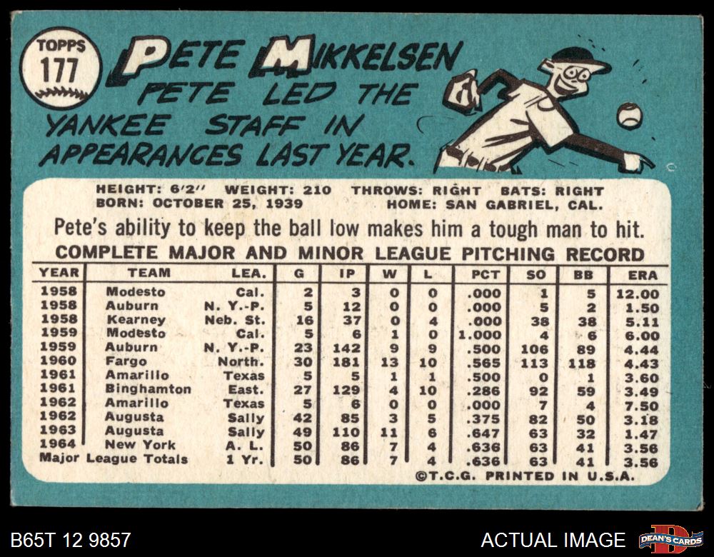 1965 Topps #177 Pete Mikkelsen 3.5 - VG+