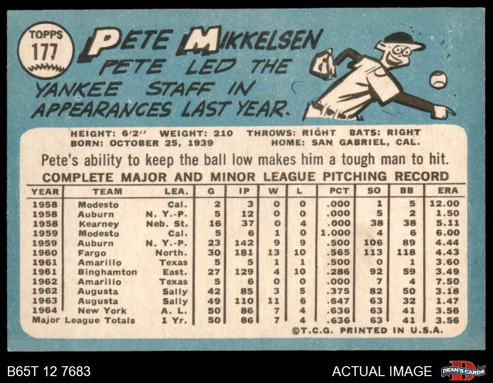 1965 Topps #177 Pete Mikkelsen 4 - VG/EX