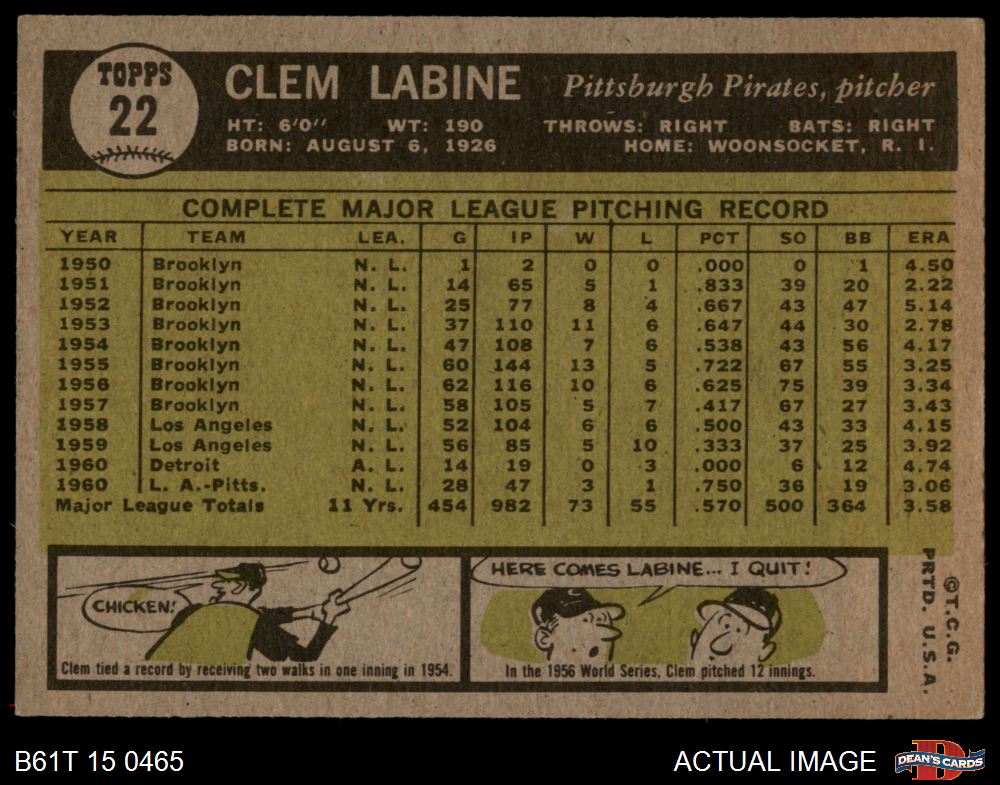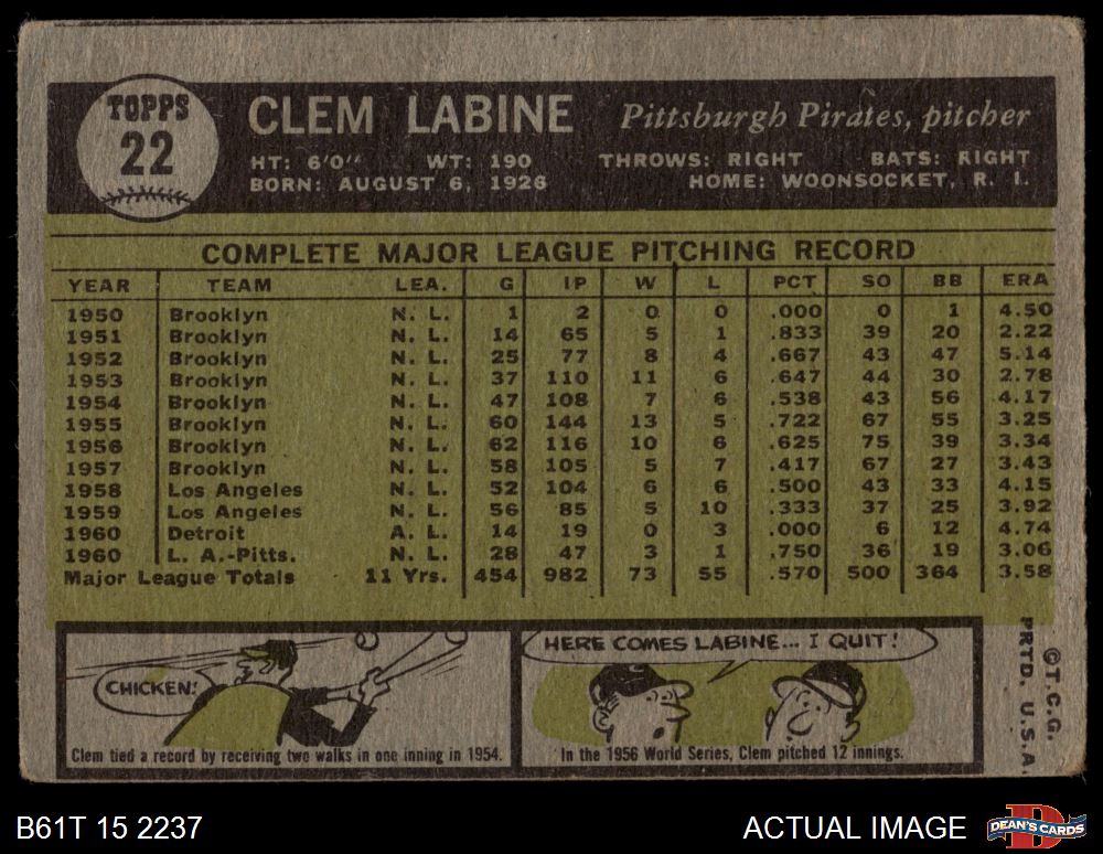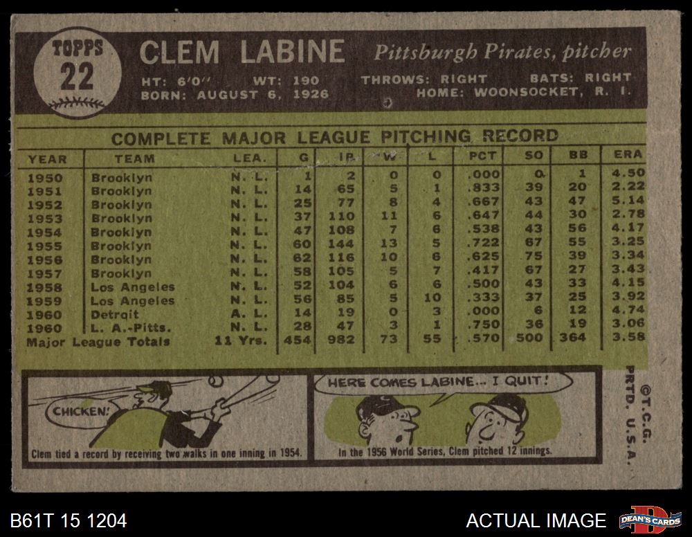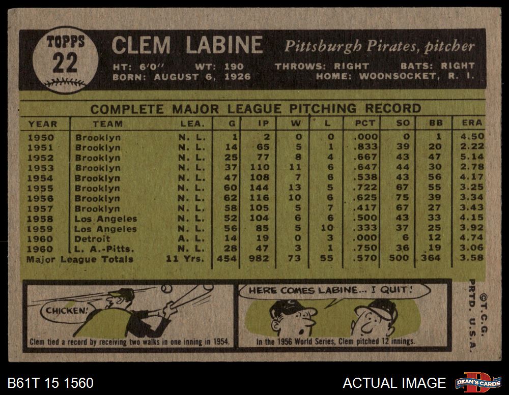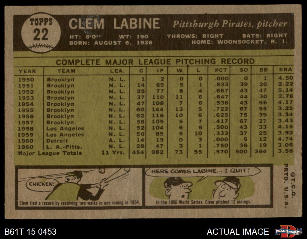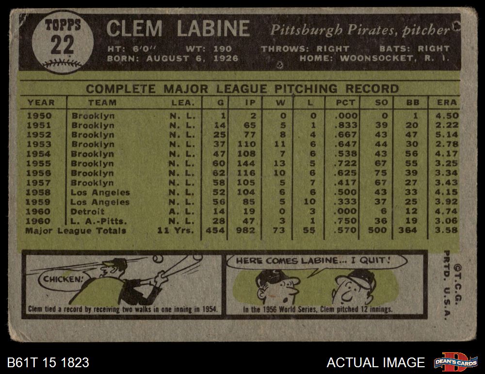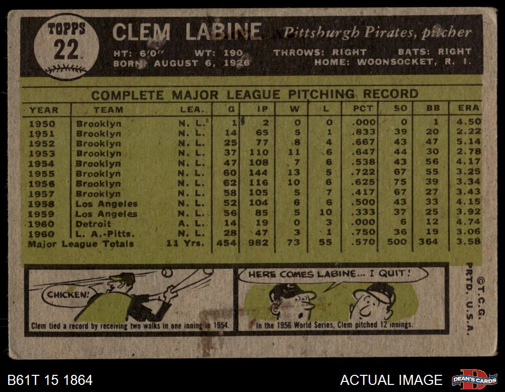1961 Topps Baseball Cards (10,654 available)1961 Topps Pirates (844 available)