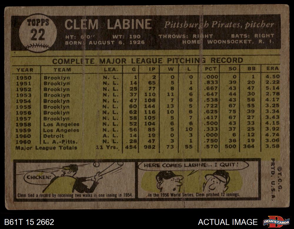 1961 Topps #22 Clem Labine