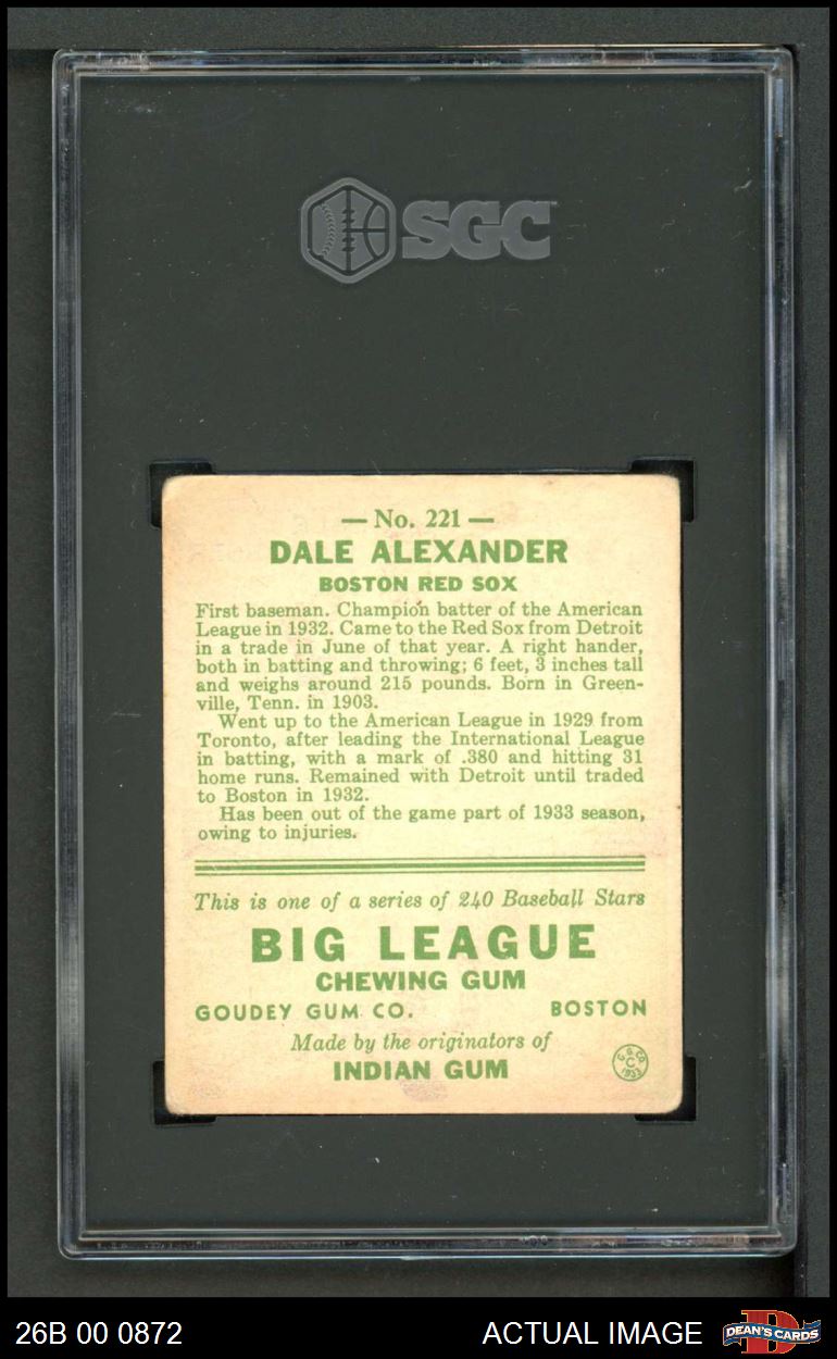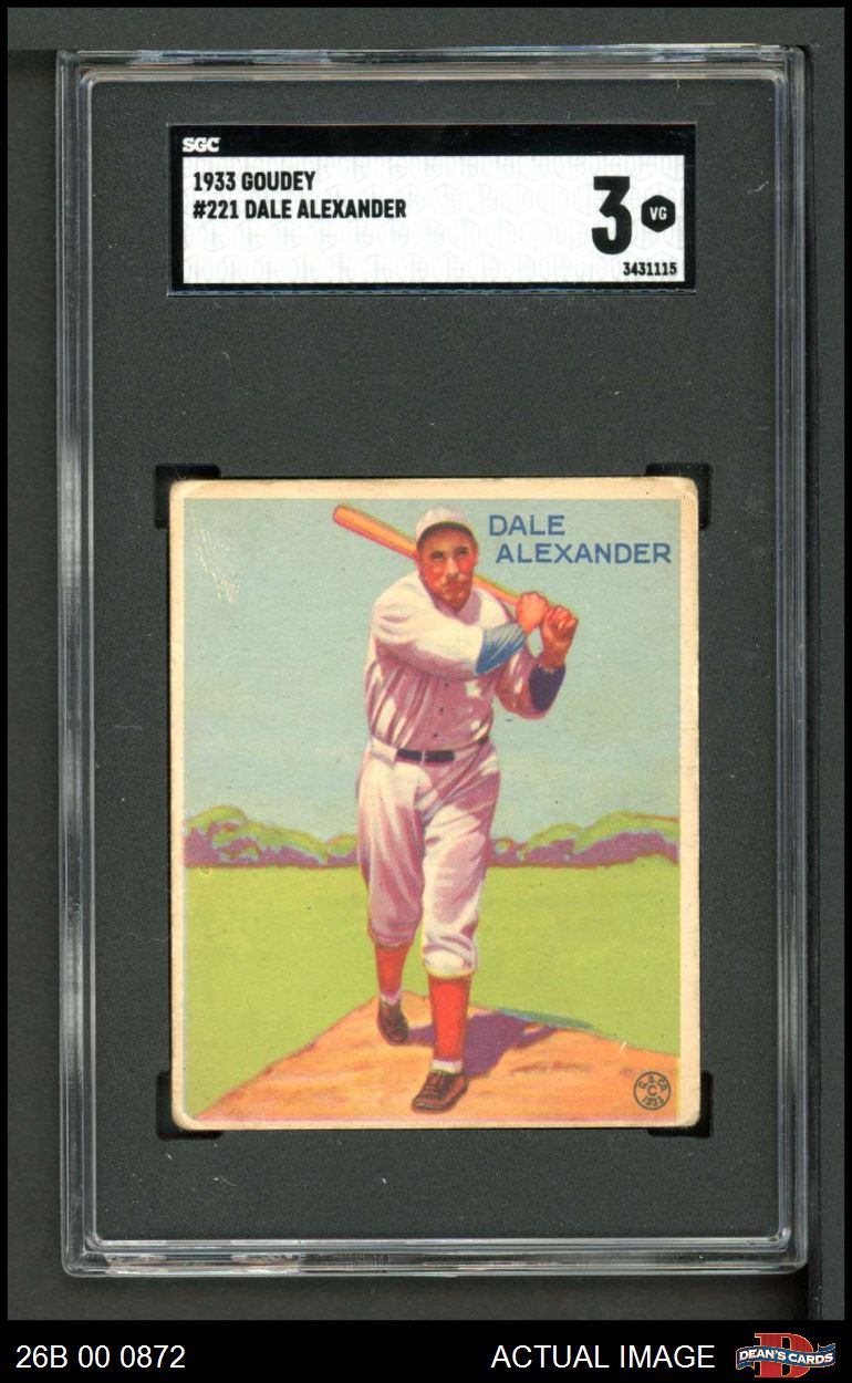 1933 Goudey #221 Dale Alexander SGC 3 - VG