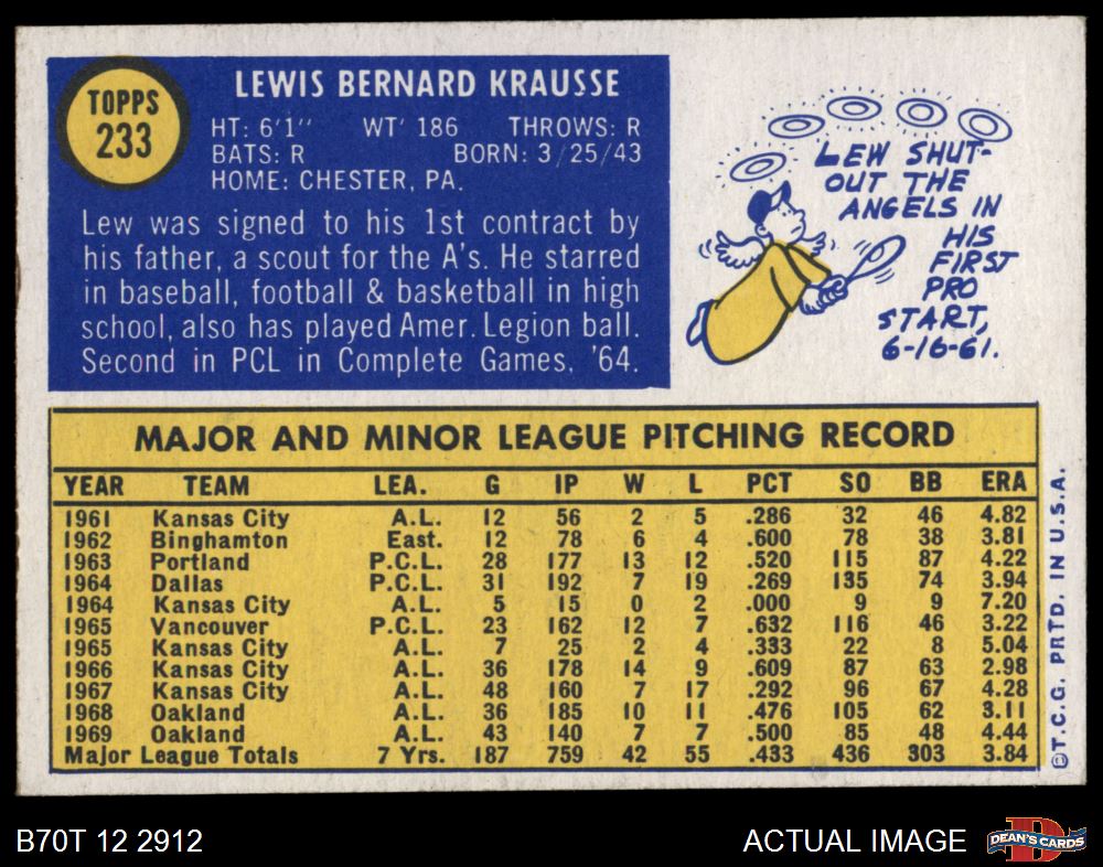 1970 Topps #233 Lew Krausse 6 - EX/MT