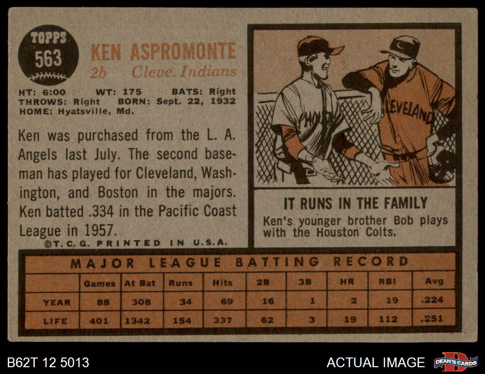 1962 Topps #563 Ken Aspromonte