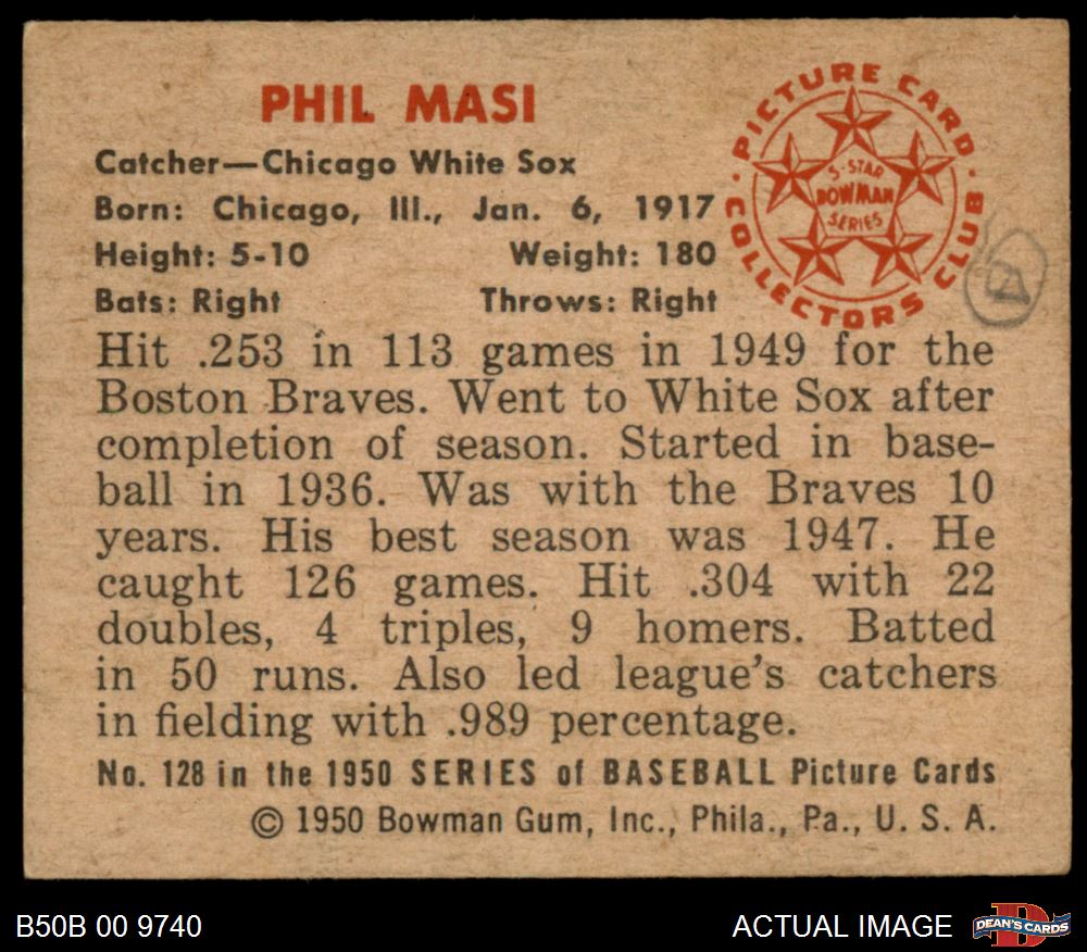 1950 Bowman #128 Phil Masi 4.5 - VG/EX+