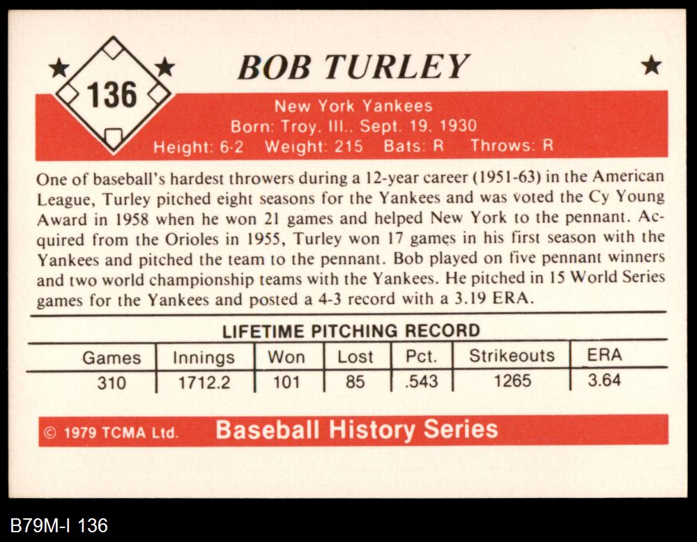 1979 TCMA The 1950's #136 Bob Turley