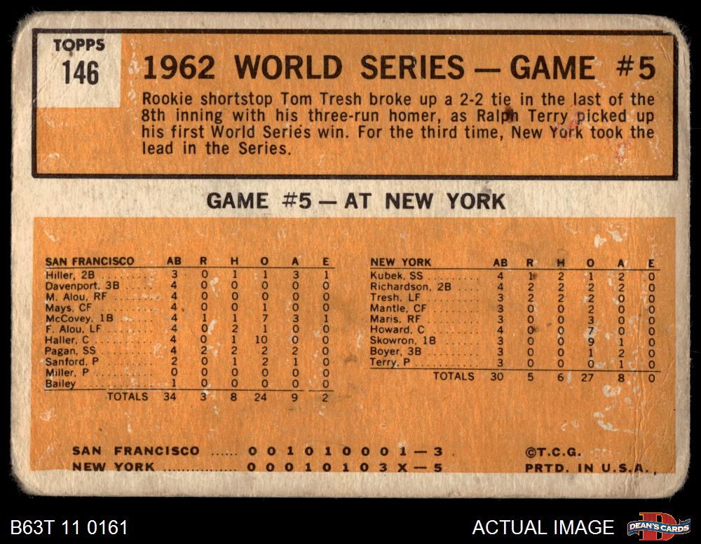 1963 Topps #146 - Tom Tresh 1962 World Series - Game #5 - Tresh's Homer Defeats Giants AUTHENTIC
