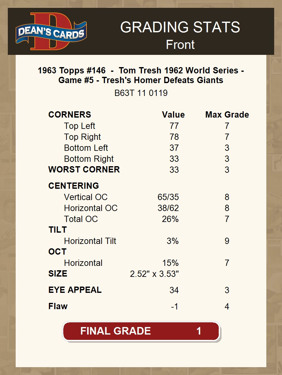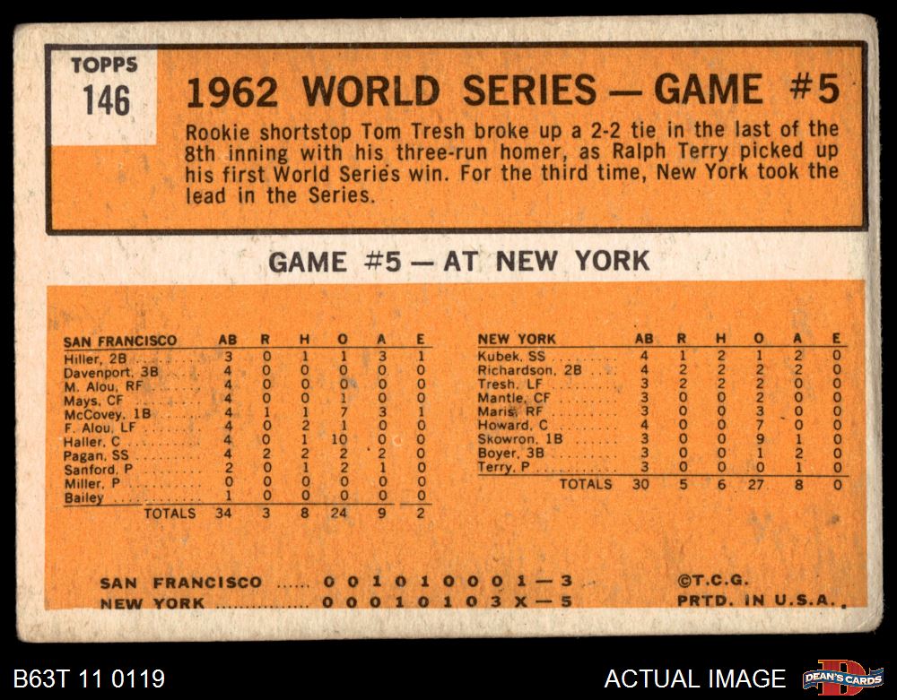 1963 Topps #146 - Tom Tresh 1962 World Series - Game #5 - Tresh's Homer Defeats Giants 1 - POOR