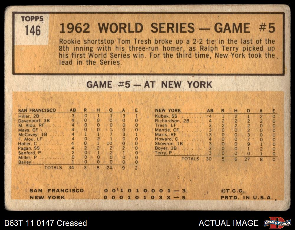1963 Topps #146 1962 World Series - Game #5 - Tresh's Homer Defeats Giants