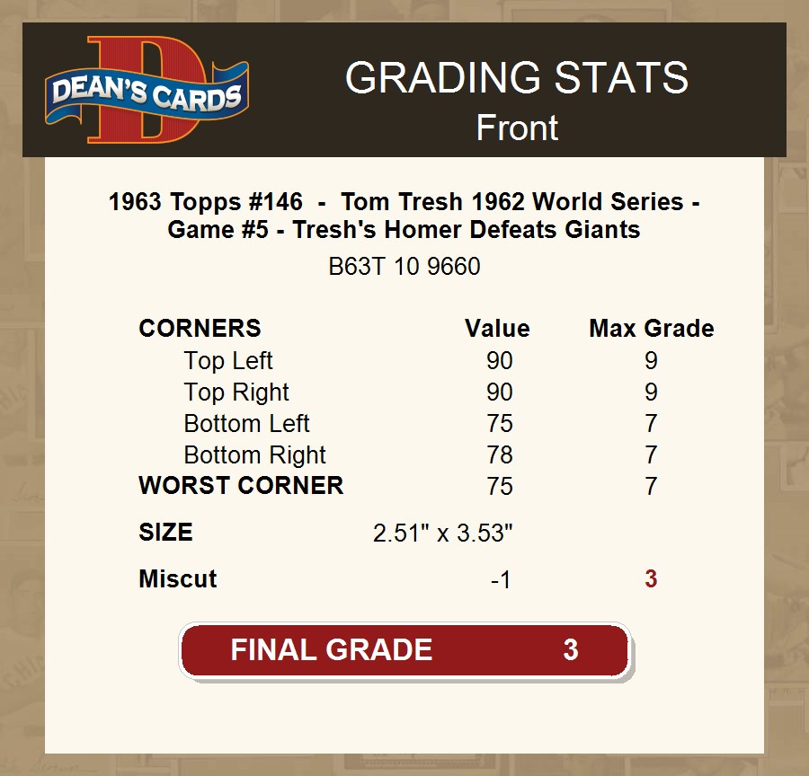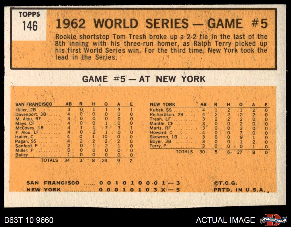 1963 Topps #146 - Tom Tresh 1962 World Series - Game #5 - Tresh's Homer Defeats Giants 3 - VG