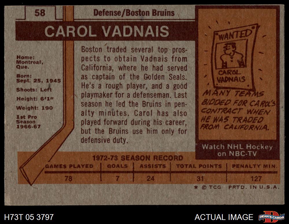 1973 Topps #58 Carol Vadnais 4 - VG/EX