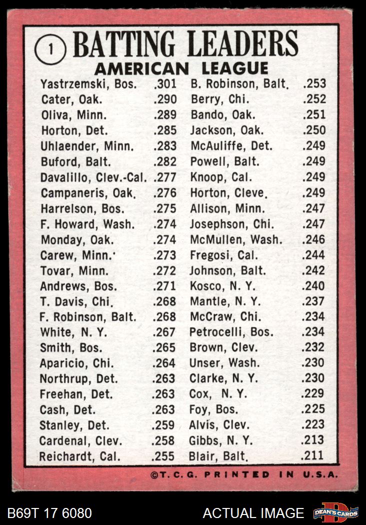 1969 Topps Baseball Cards (14,952 available)1969 Topps Red Sox / Athletics / Twins (24 available)