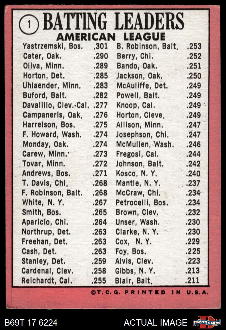 1969 Topps #1 AL Batting Leaders