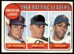 1969 Topps #1 - Carl Yastrzemski / Danny Cater / Tony Oliva AL Batting Leaders 6 - EX/MT