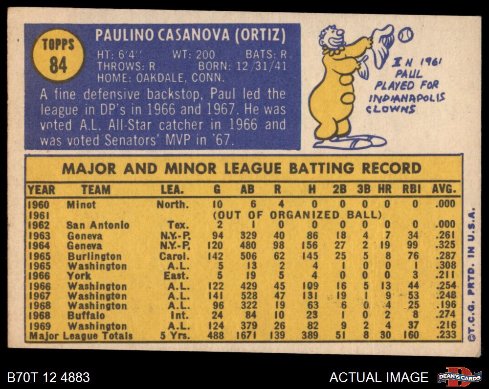 1970 Topps Baseball Cards (12,224 available)1970 Topps Senators (608 available)