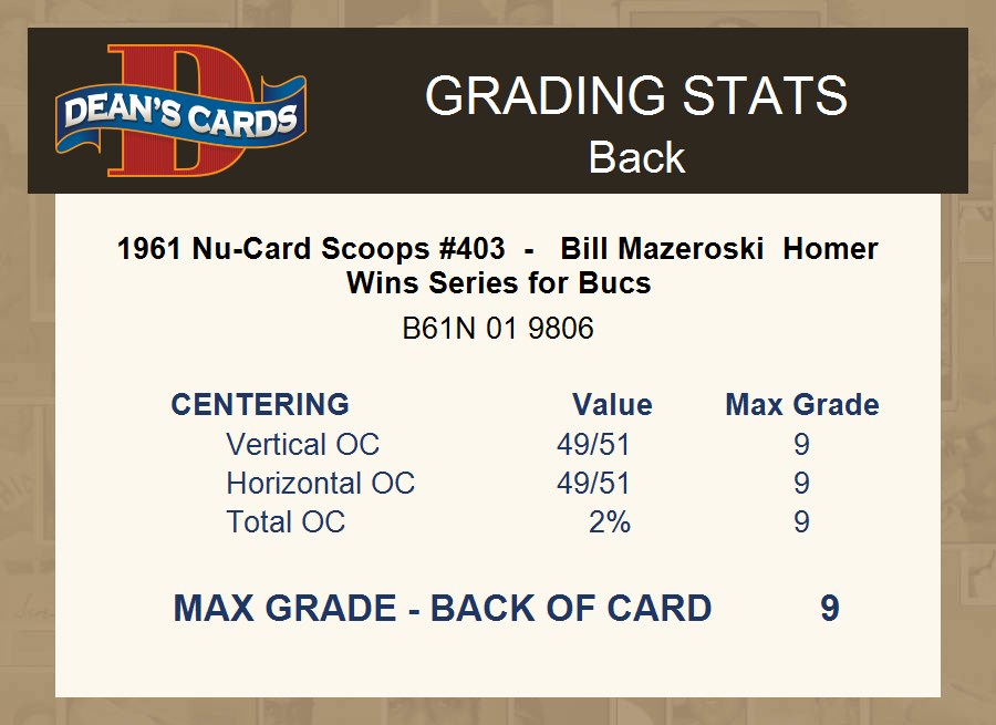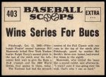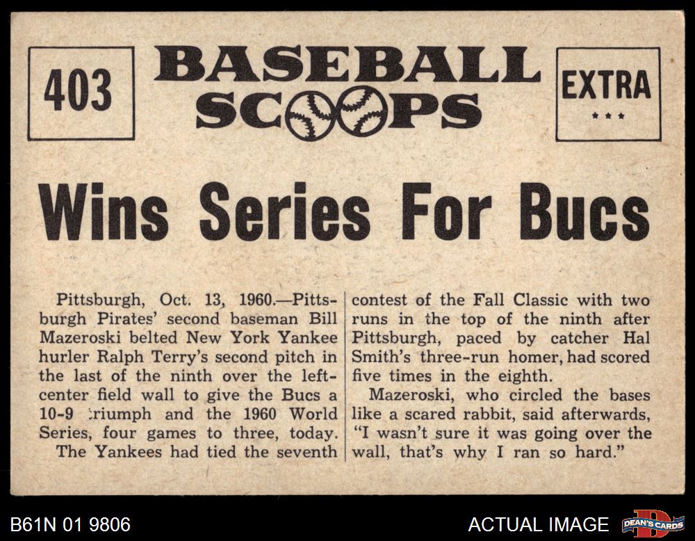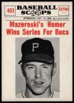 1961 Nu-Card Scoops #403 - Bill Mazeroski Homer Wins Series for Bucs 6 - EX/MT