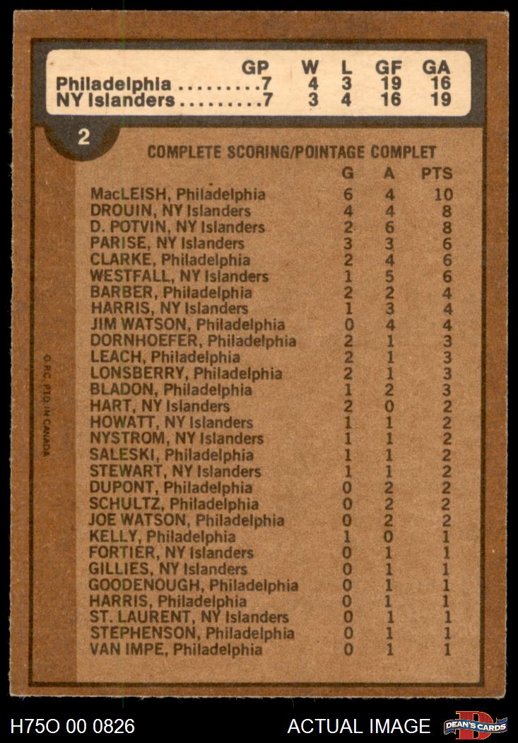 1975 O-Pee-Chee NHL #2 Semi-Finals Philadelphia 4 N.Y. Islanders 3