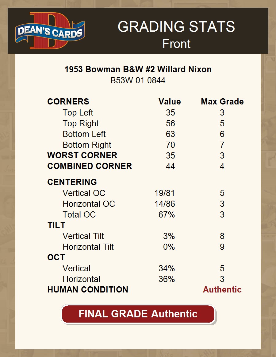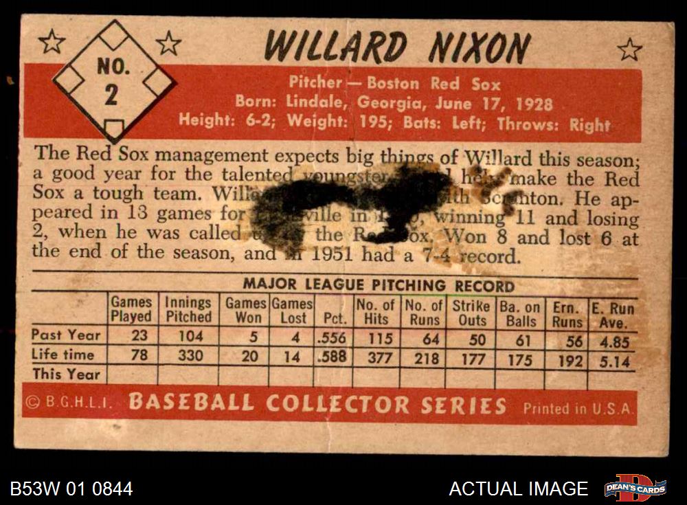 1953 Bowman B&W #2 Willard Nixon AUTHENTIC