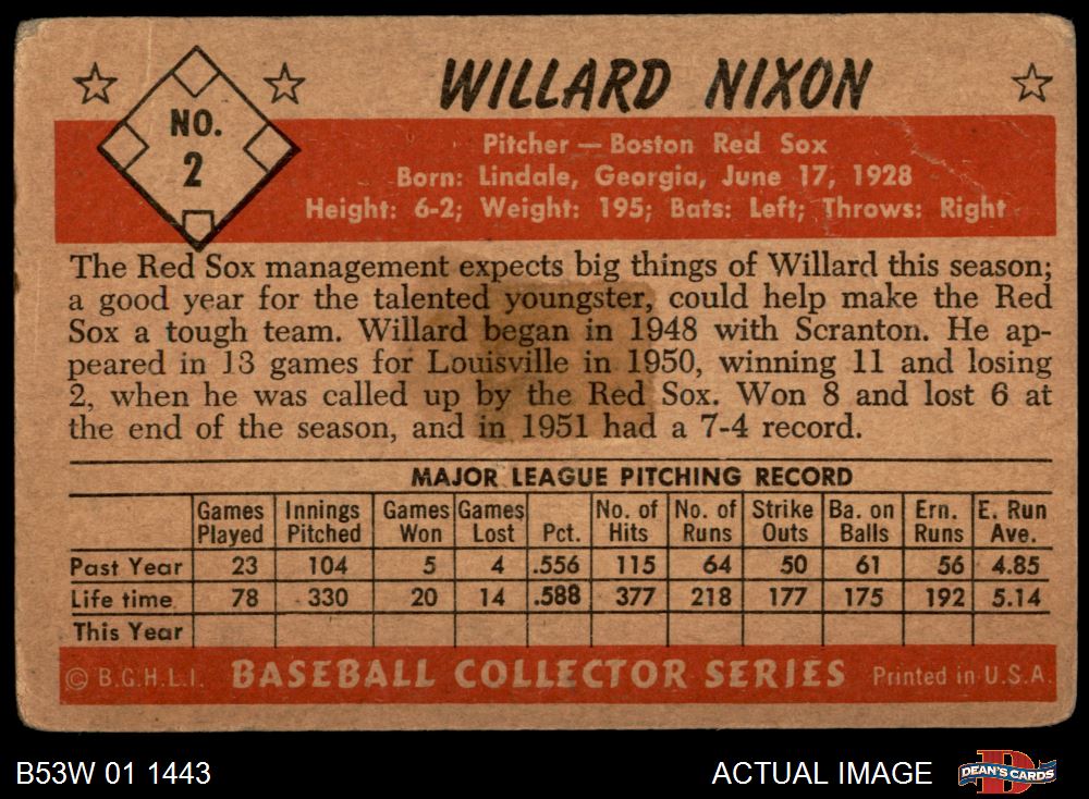1953 Bowman B&W #2 Willard Nixon 1 - POOR