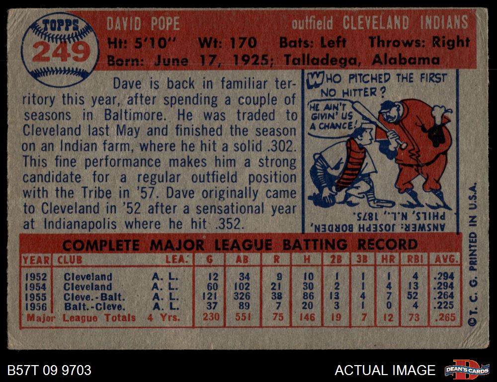 1957 Topps #249 Dave Pope