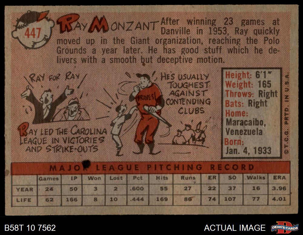 1958 Topps #447 Ray Monzant 5.5 - EX+