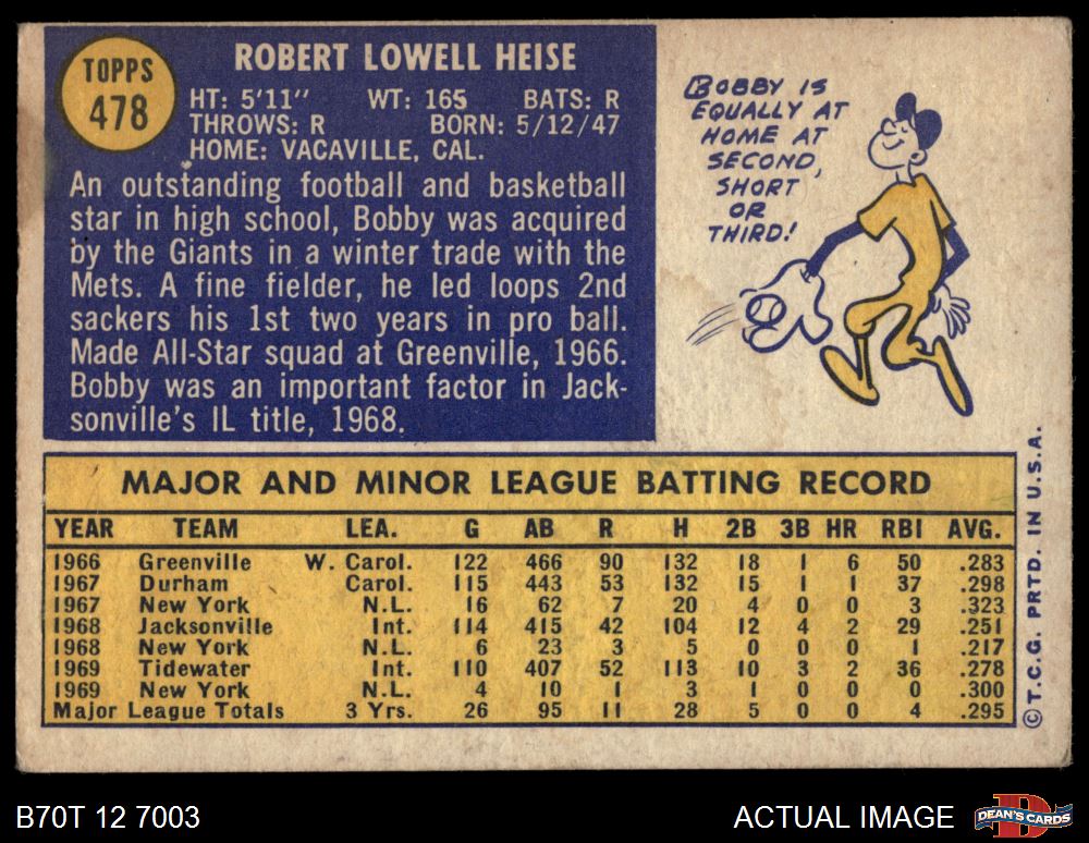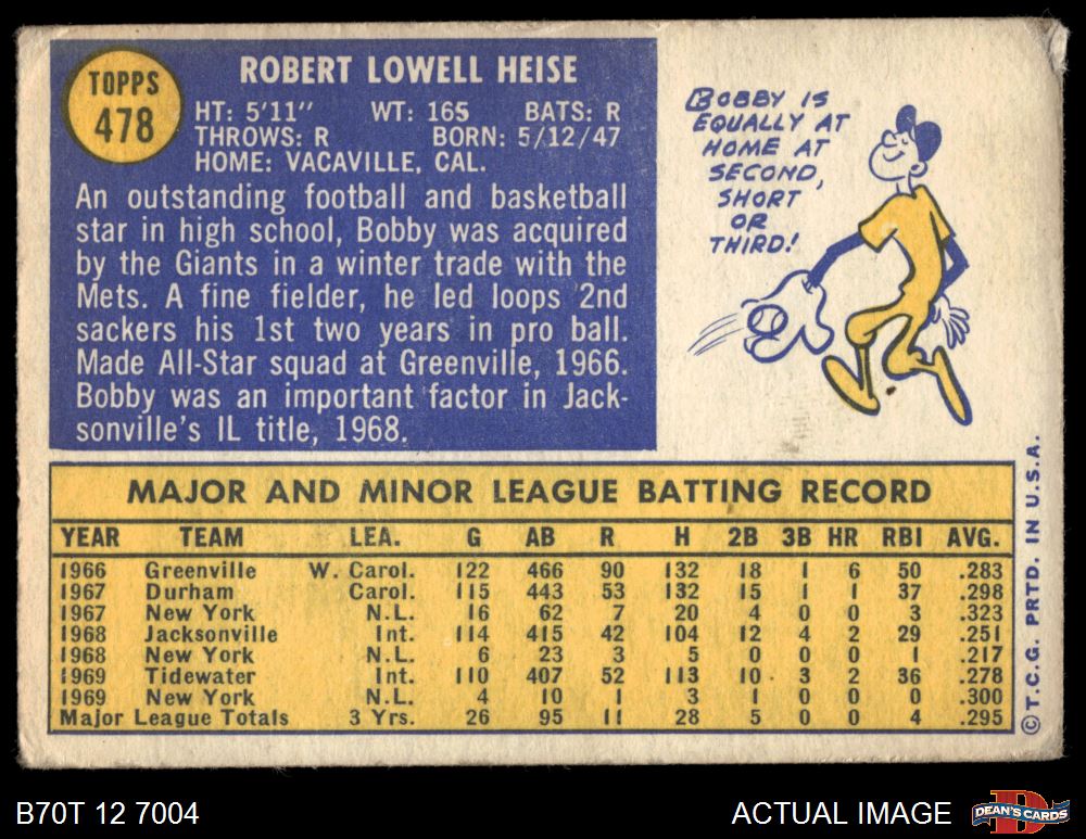 1970 Topps #478 Bob Heise 2 - GOOD