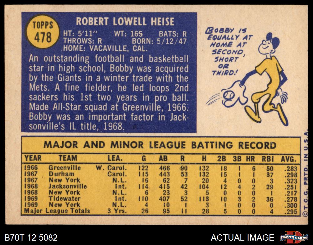 1970 Topps #478 Bob Heise 4 - VG/EX