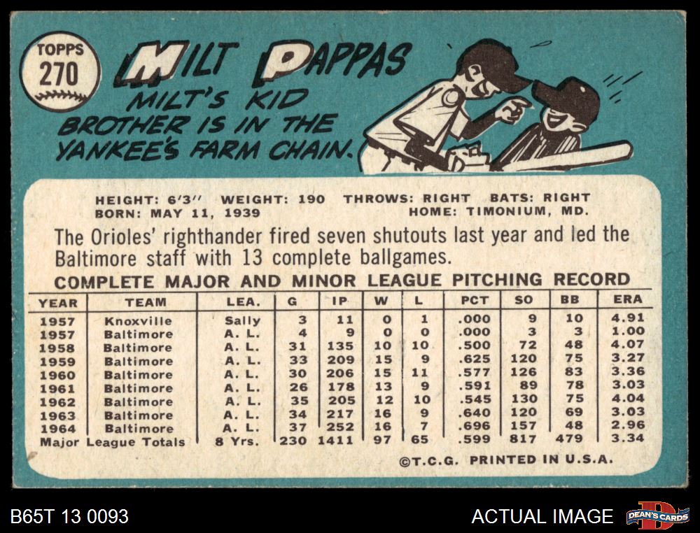 1965 Topps #270 Milt Pappas Front Thumbnail