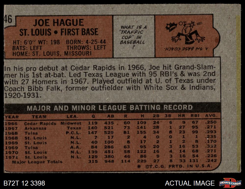 1972 Topps #546 Joe Hague 2 - GOOD