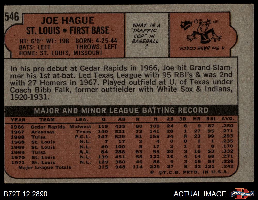 1972 Topps #546 Joe Hague 3 - VG