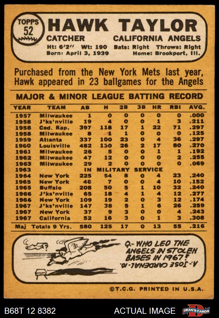 1968 Topps #52 Bob Hawk Taylor 6.5 - EX/MT+