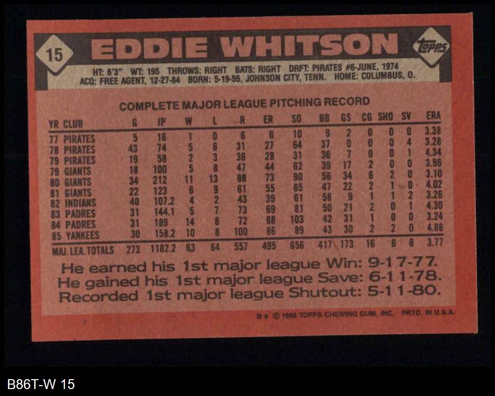 1986 Topps #15 Eddie Whitson
