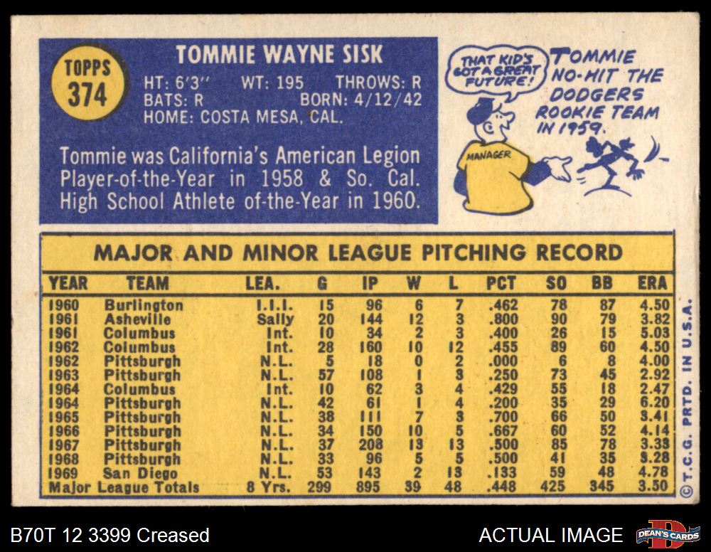 1970 Topps #374 Tommie Sisk Front Thumbnail