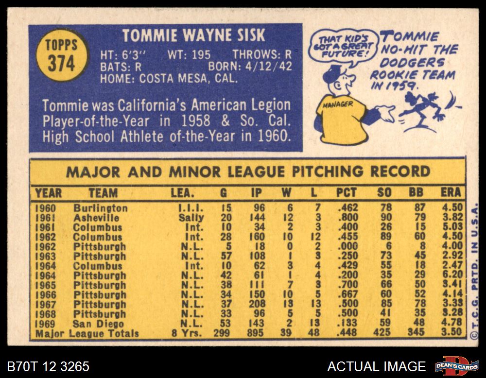 1970 Topps #374 Tommie Sisk 4 - VG/EX