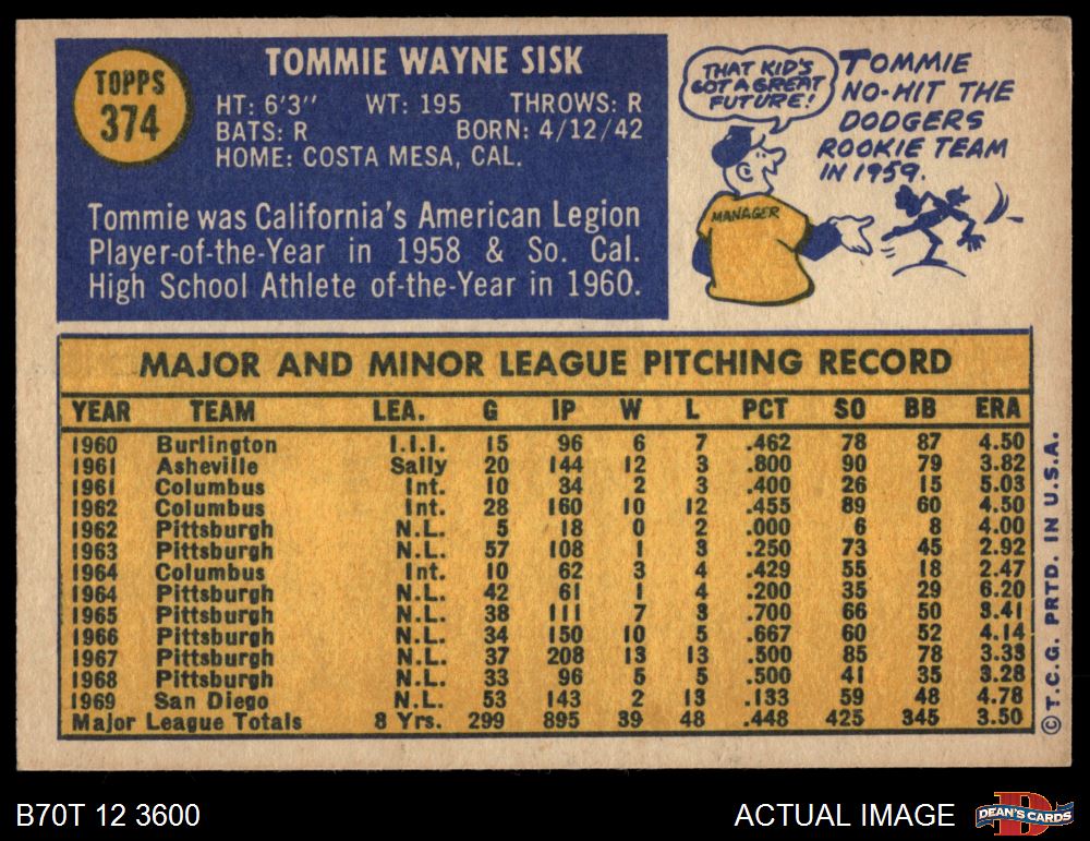 1970 Topps #374 Tommie Sisk 6 - EX/MT