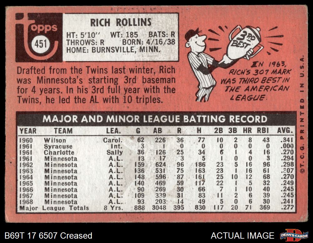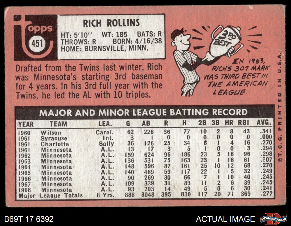 1969 Topps #451 YN Rich Rollins 1.5 - FAIR